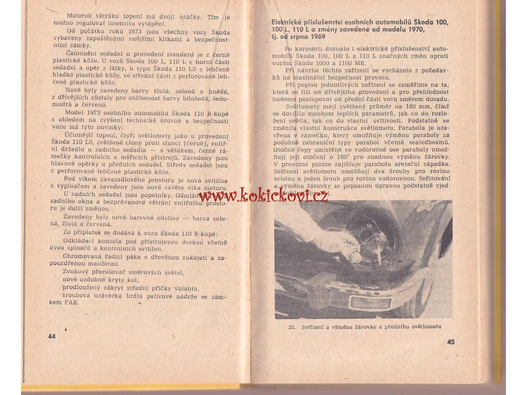 Škoda 1000MB až 110R Kupé - opravy, seřizování a údržba svépomocí, 1973
