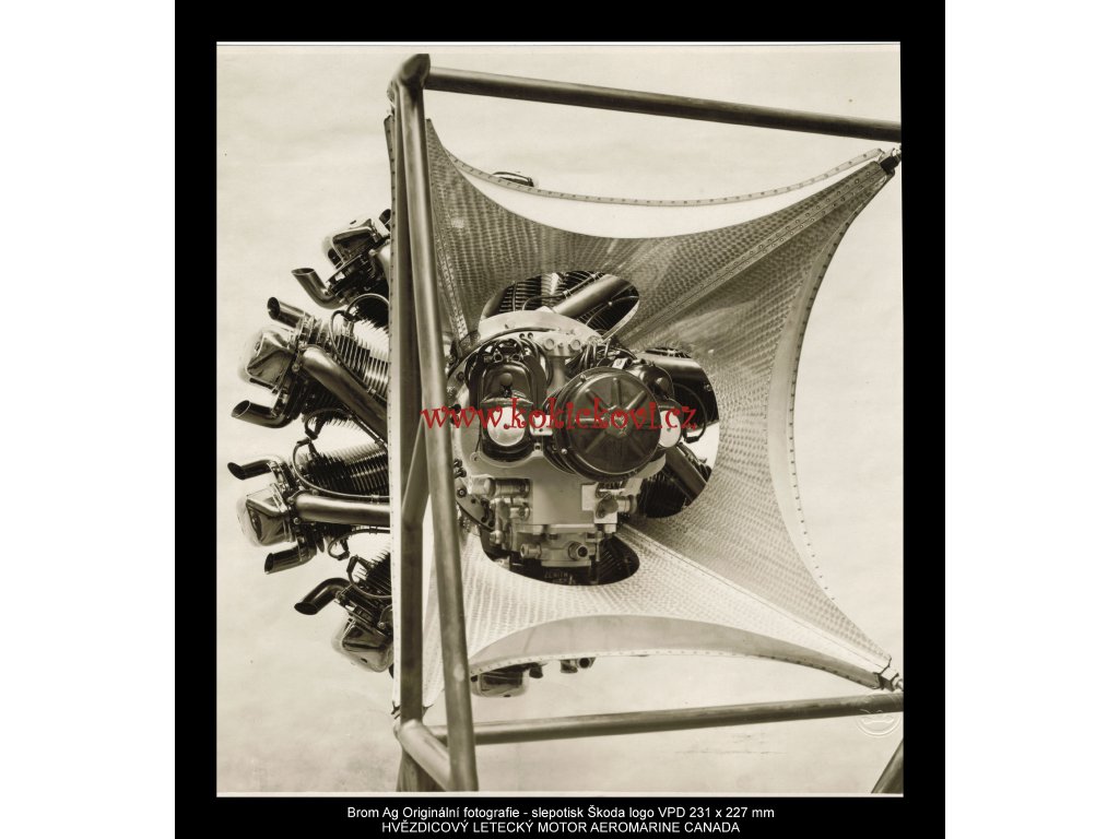 HVĚZDICOVÝ LETECKÝ MOTOR AEROMARINE CANADA - BROM Ag. ORIG. FOTOGRAFIE - 231*227 MM . SLEPOTISK LOGO ŠKODA - 3 KUSY KONVOLUT (CENA ZA KOMPLET 3 KUSŮ).