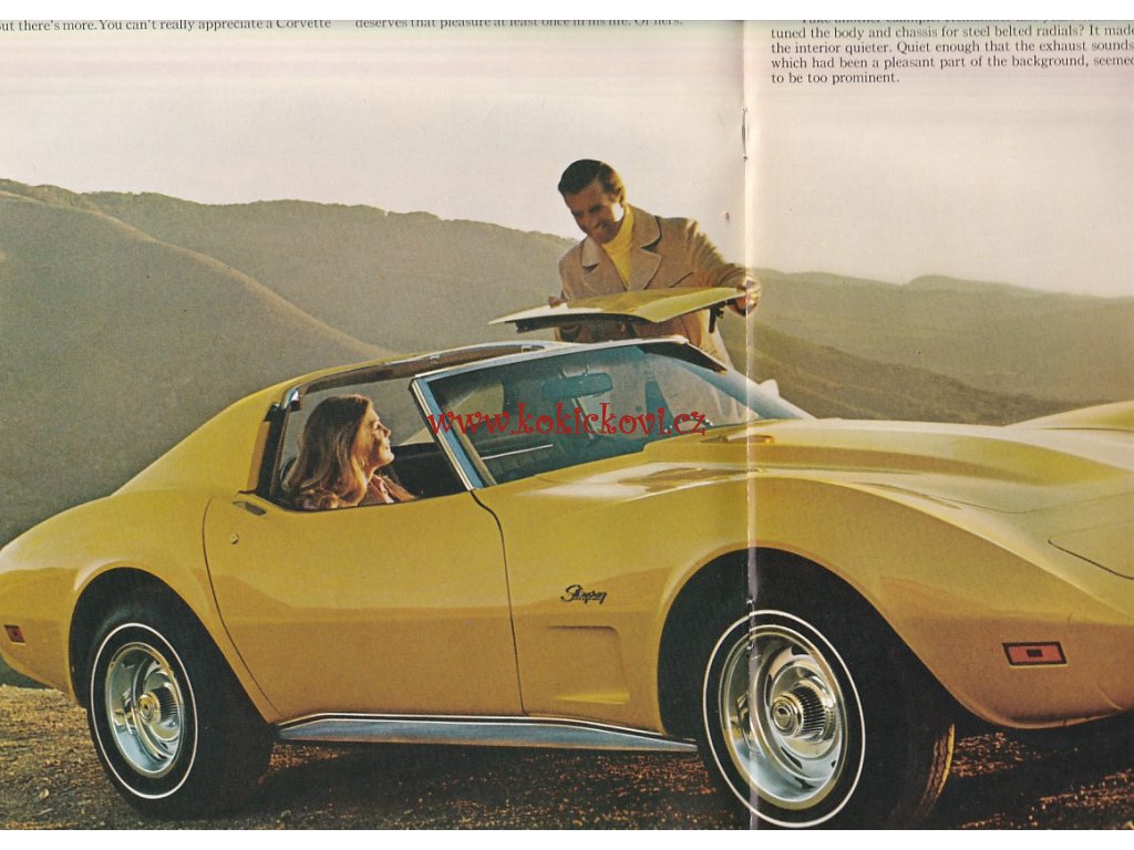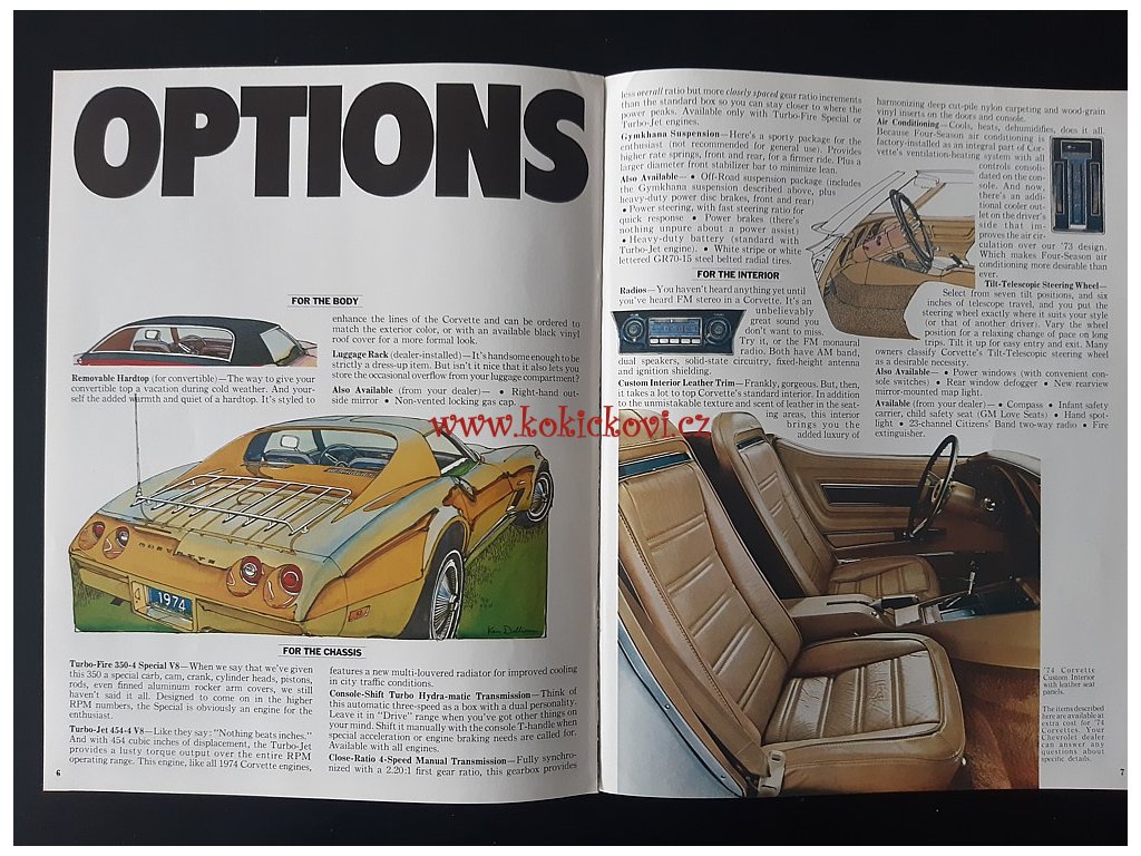 Překrásný reklamní prospekt velikosti cca A4 z roku 1974, Chevrolet Corvette Stingray, reklamní prospekt 8 stran, dobrý stav (2 jako ve škole).