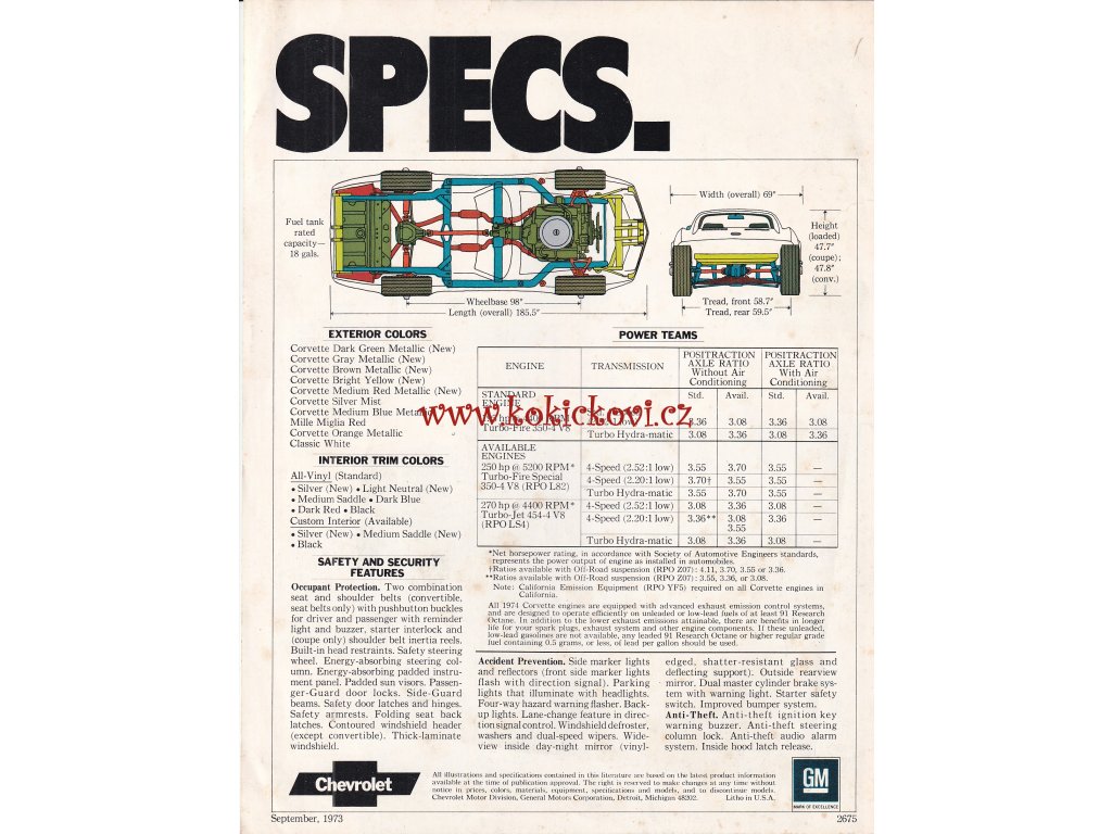 1974 Chevrolet Corvette Stingray reklamní prospekt 8 stran originál A4