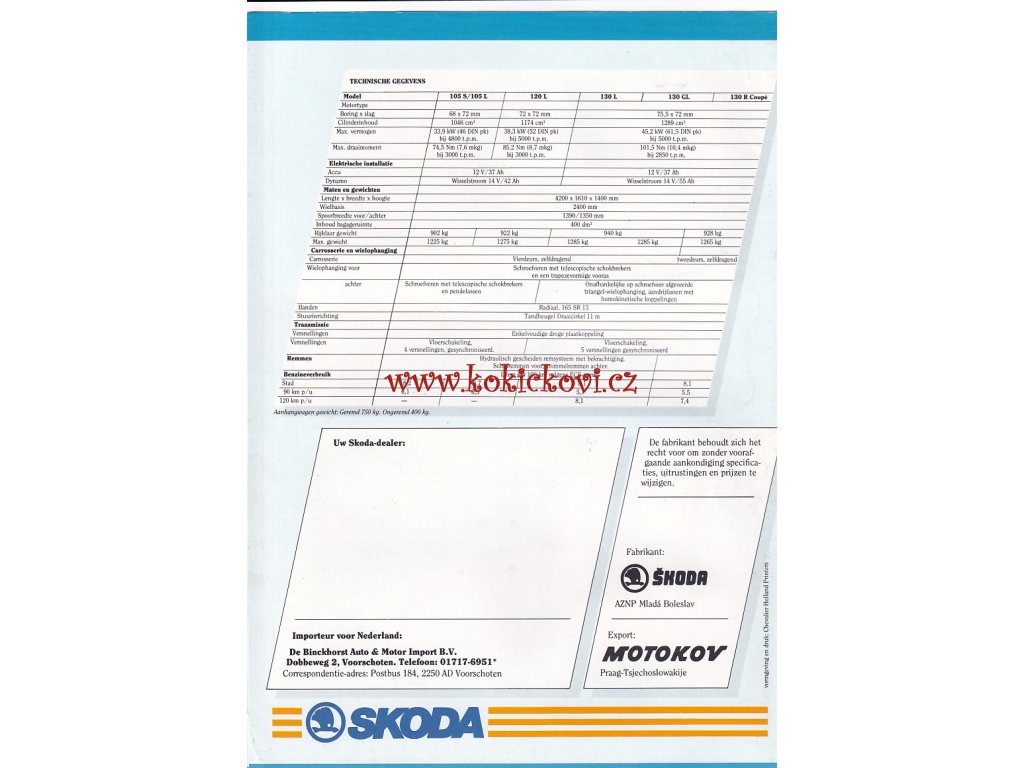 ŠKODA 105 - 120 - 130 - 130 R COUPÉ - REKLAMNÍ PROSPEKT A4 - 4 STRANY - - HOLANDSKY