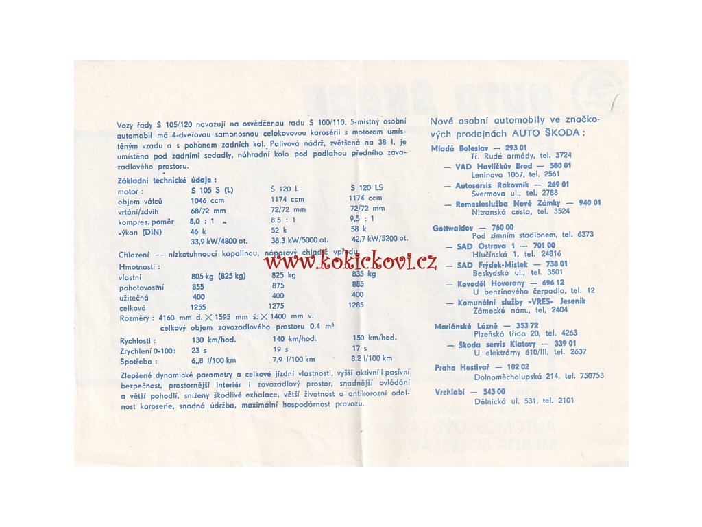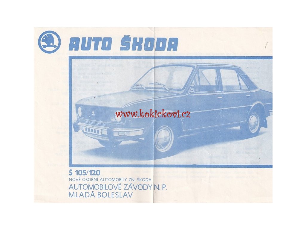 Škoda 105 / 120 - reklamní prospekt A5 - automobilové závody N.P. Mladá Boleslav, v polovině přeloženo. Do sbírky.