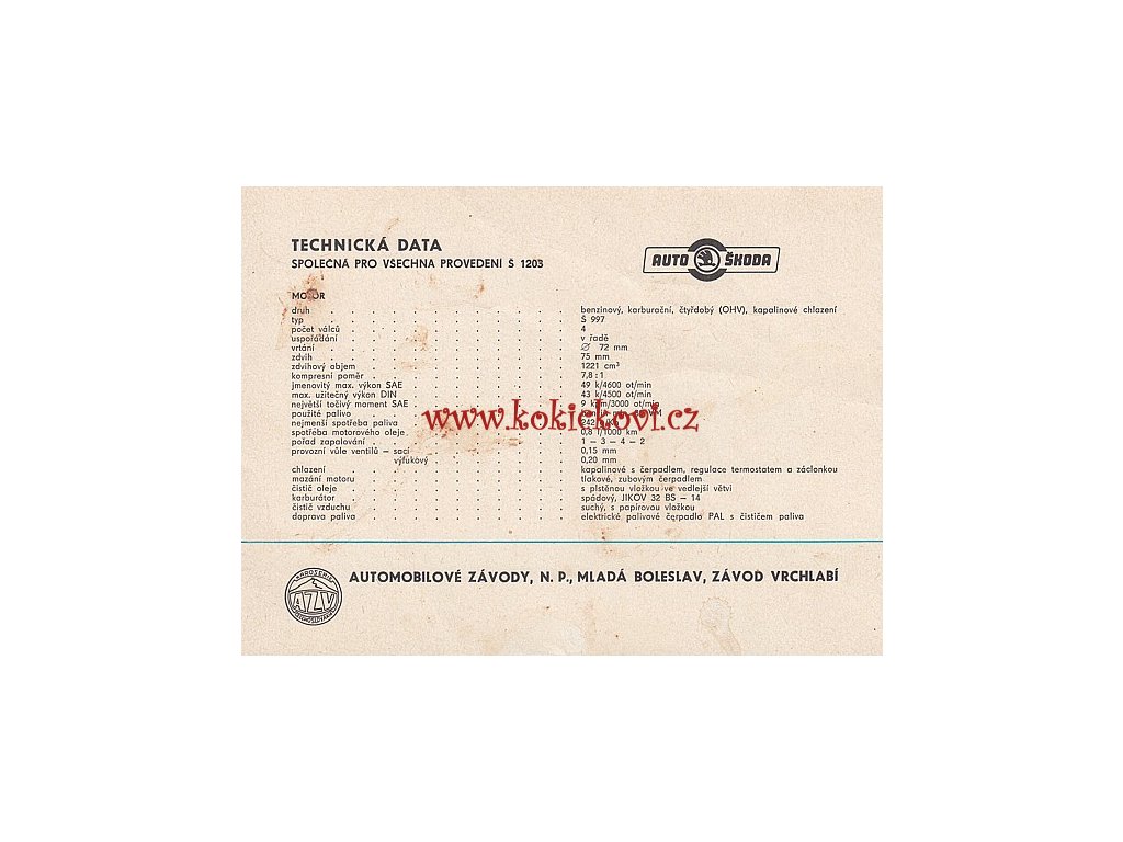 ŠKODA 1203 VAN - ROL - COM - TECHNICKÁ DATA - 6 STRAN A5 REKLAMNÍ PROSPEKT