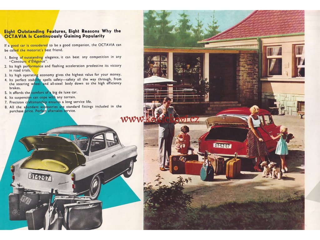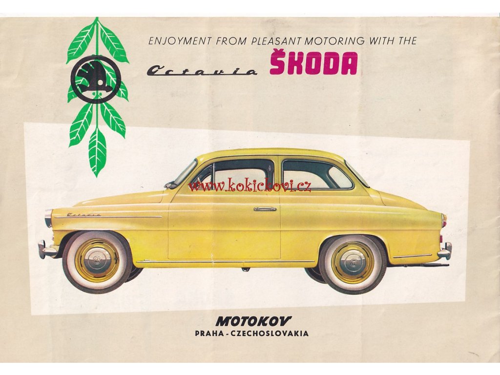 ŠKODA OCTAVIA - VELKÝ LUXUSNÍ LUXUSNÍ PROSPEKT A4 - 12 STRAN PLUS 2 ROZKLÁDACÍ A5 - CZECHOSLOVAKIA - MOTOKOV - ANGLICKY, DROBNÉ OPOTŘEBENÍ OBÁLKY (LEHKÉ PŘELOŽENÍ, PŘÍPIS PRODEJCE NA DESKÁCH). PROSPEKT JE ORIGINÁL ZE 60. LET.
