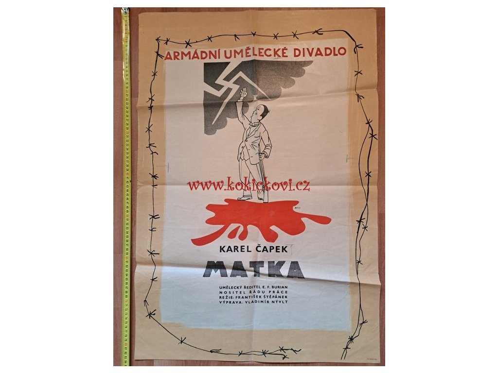 Kombinace sytě červené, bílé a tmavě modré barvy, technika litografie, při okrají drobná natržení, přeloženo, v překladech drobné dírky. Plakát nebyl nikdy pověšen ani nalepen, v tomto složeném stavu přečkal téměř jedno století a čeká na svoji první velkou příležitost se konečně ukázat světu.