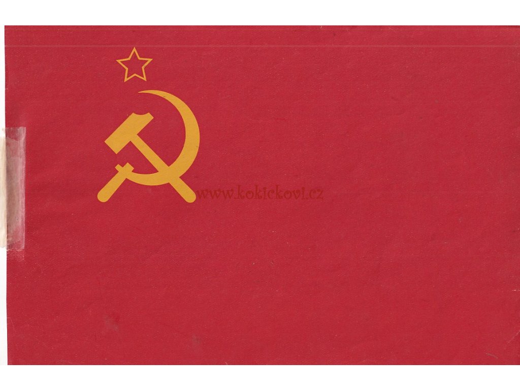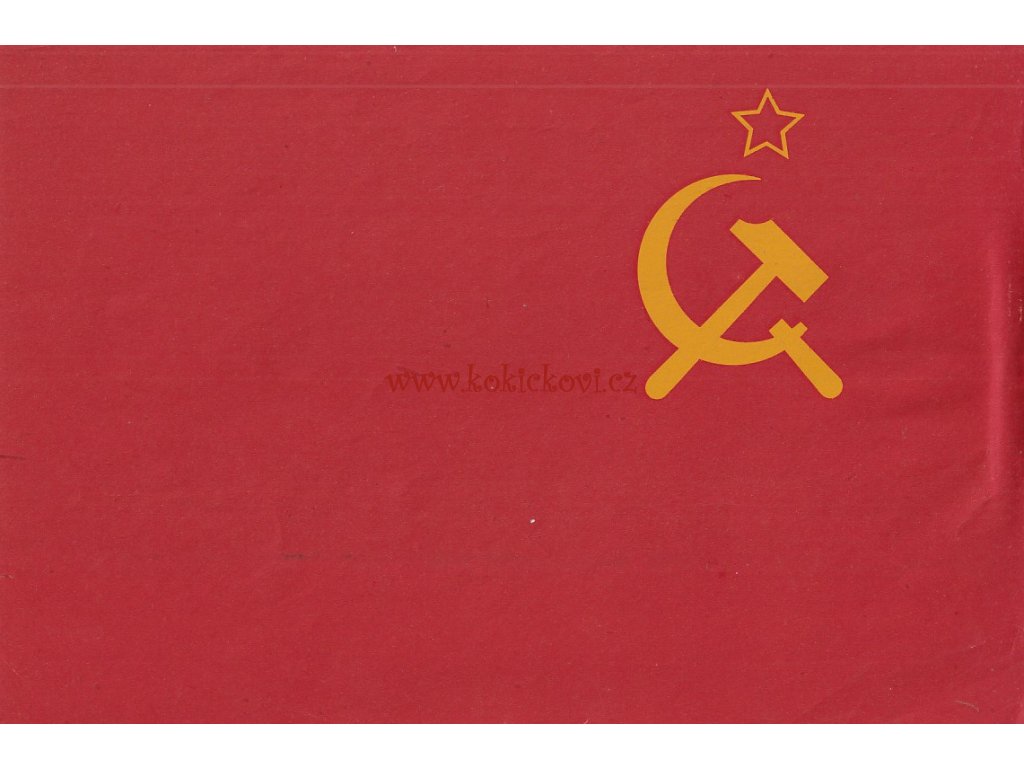 Starý propagační plakát S RUDOU VLAJKOU SSSR A4 určený k pověšení na nástěnku nebo do okna z poloviny 50. let.