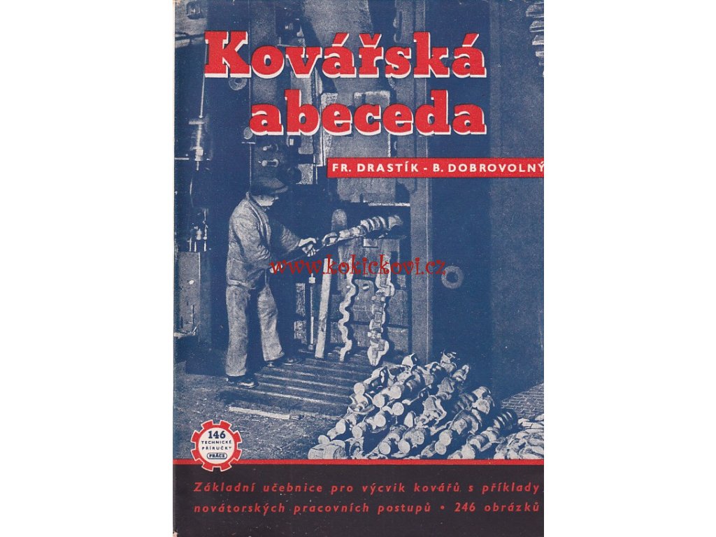 KOVÁŘSKÁ ABECEDA – UČEBNICE PRO KOVÁŘE A JEJICH VÝCVIK 1952. FR. DRASTÍK A BOHUMIL DOBROVOLNÝ, PRAHA 1952, PŮVODNÍ BROŽ, VELMI PĚKNÝ STAV VČETNĚ PŘEBALU, UVNITŘ DÁVNÉ RAZÍTKO, CELKOVĚ PĚKNÝ STAV, 176 STRAN, NÁKLAD POUZE 5400KS.