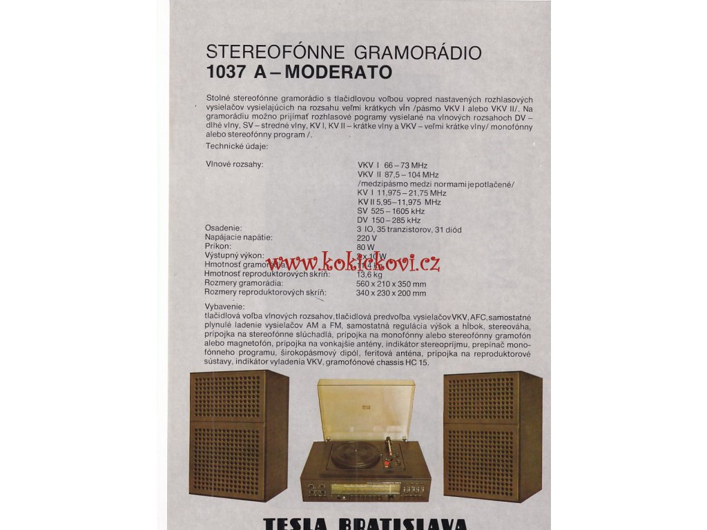 Tesla Bratislava - PROSPEKT STOLNÍ GRAMORÁDIO 1037 A MODERATO- A4 - 2 STRANY