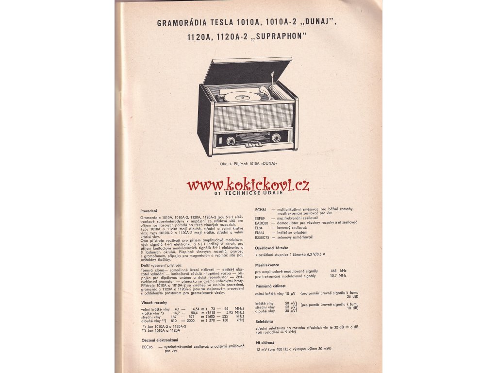 TESLA 1010A AŽ 1010A2 DUNAJ A TESLA 1120 A 1120A2 SUPRAPHON - NÁVOD K ÚDRŽBĚ PŘÍSTROJE - A4 CCA 40 STRAN PLUS SCHEMATA.