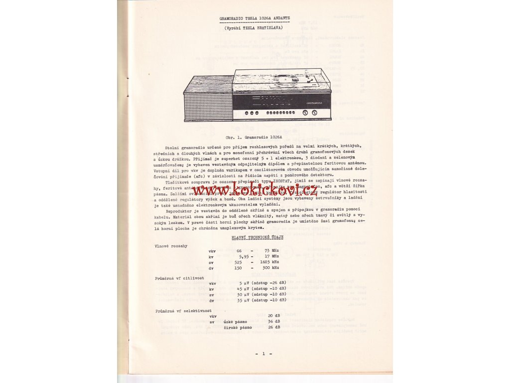 TESLA 1026 A ANDANTE - PŘEDBĚŽNÝ NÁVOD K ÚDRŽBĚ - DOKUMENTACE - A4, 14 STRAN PLUS SCHEMATA.