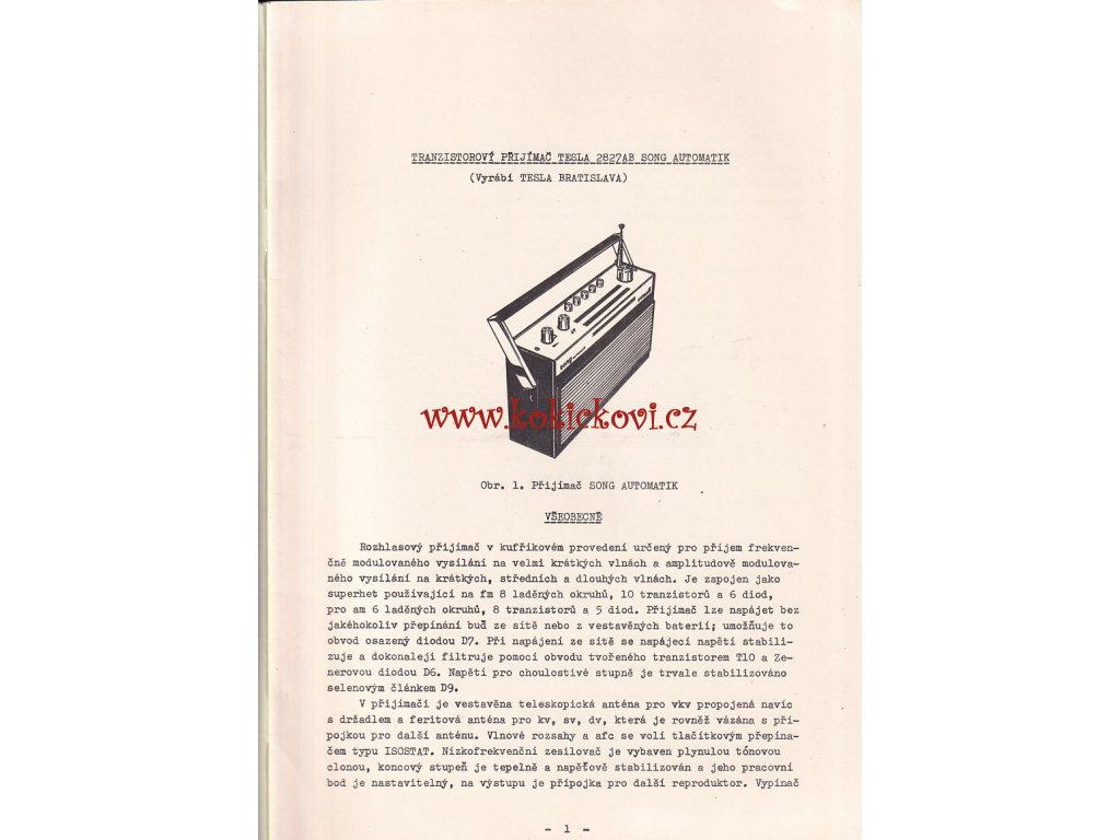 TESLA 2827 AB SONG AUTOMATIK - PŘEDBĚŽNÝ NÁVOD K ÚDRŽBĚ - DOKUMENTACE - A4, 14 STRAN PLUS SCHEMATA. DESKY SE ŠMOUHAMI OD SLUNCE. CELKOVĚ PĚKNÝ STAV VIZ AUTENTICKÝ SKEN. PODOBNÉ NÁVODY VIZ NÍŽE.