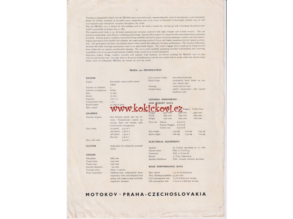 195? ŠKODA 1201 ORIG. MOTOKOV PROSPEKT A4 - 2 STRANY (1 LIST) - ANGLICKY - DO SBÍRKY