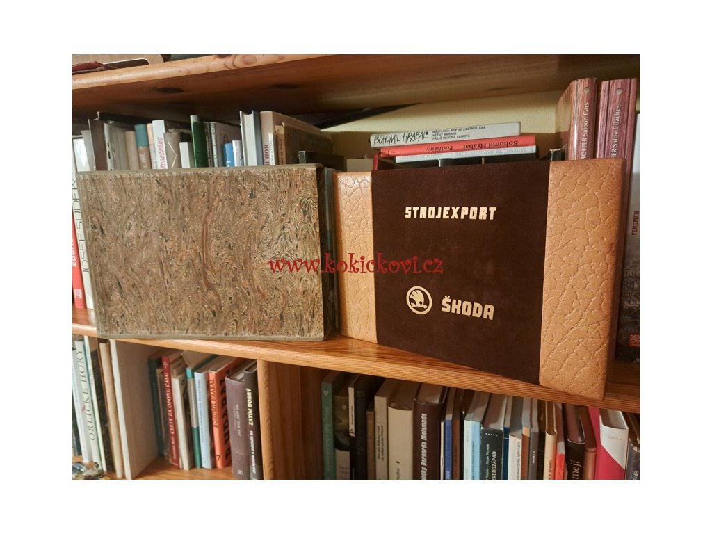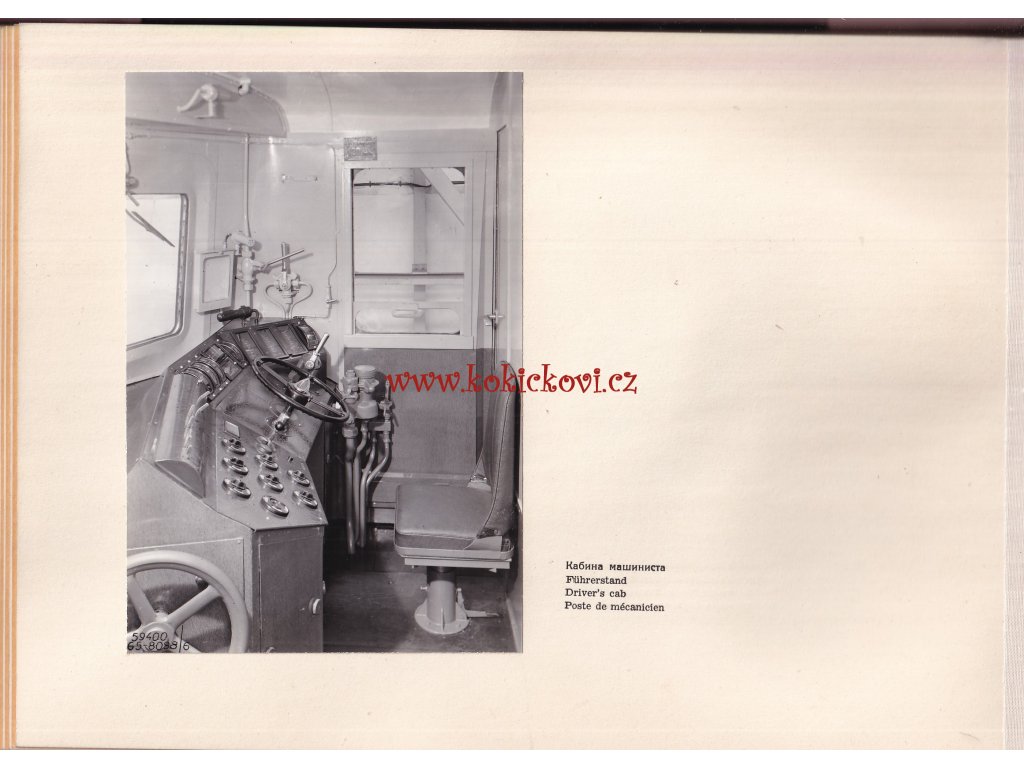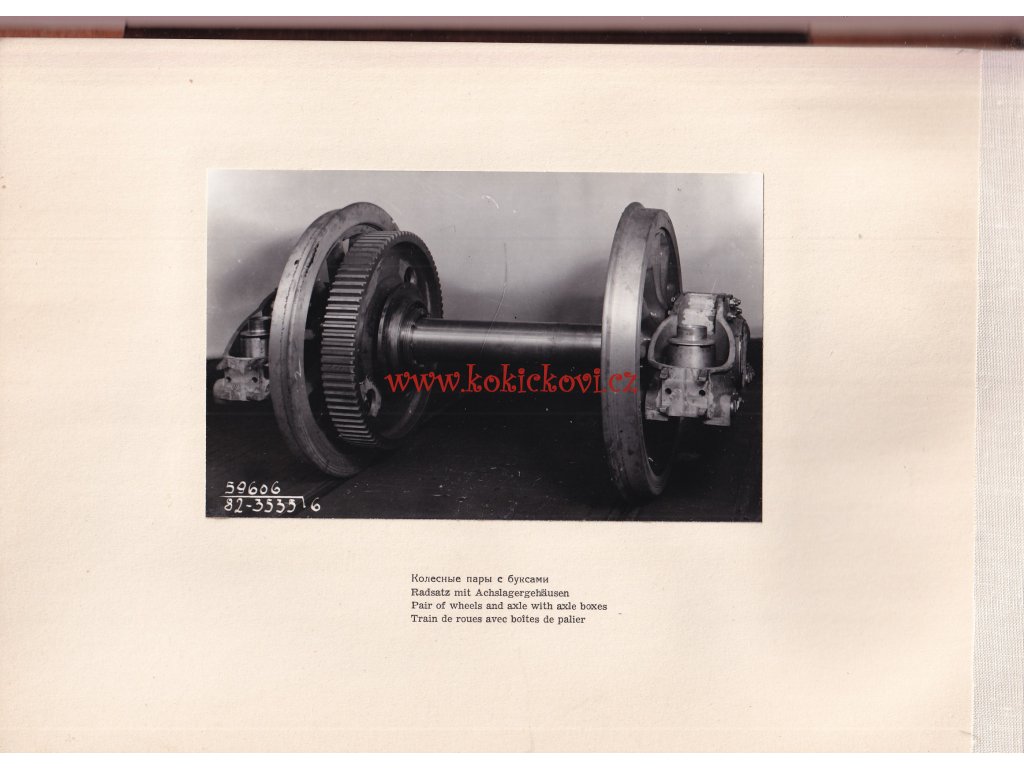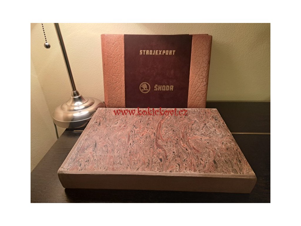 Škoda Plzeň- reprezentativní podnikový A4 katalog lokomotivní produkce z konce 50. let, luxusní plně kožená kombinovaná vazba s původním ochranným kartonem. Texty anglicky, francouzsky, rusky a španělsky.
