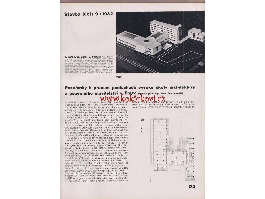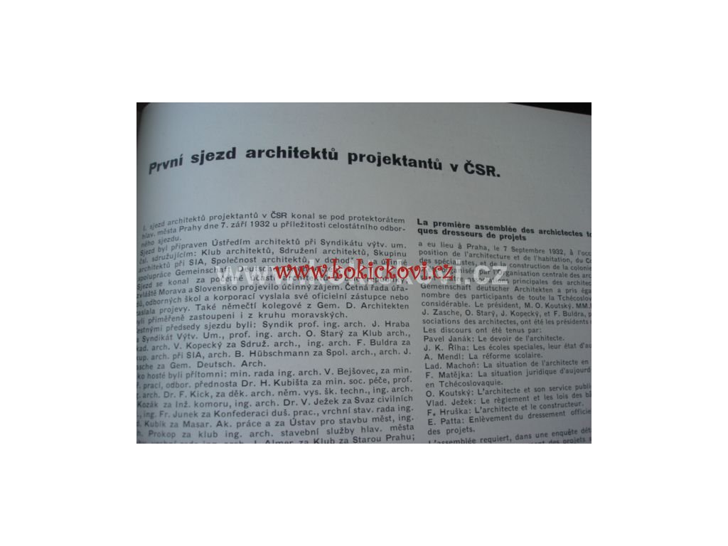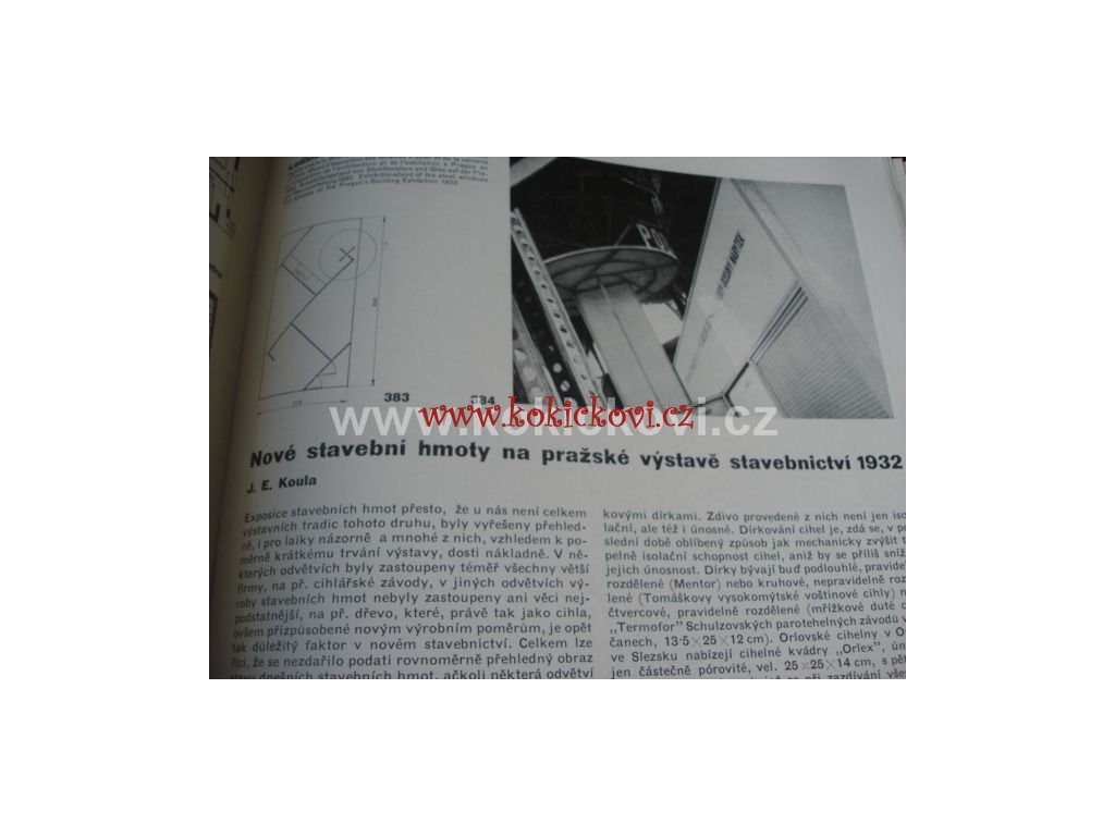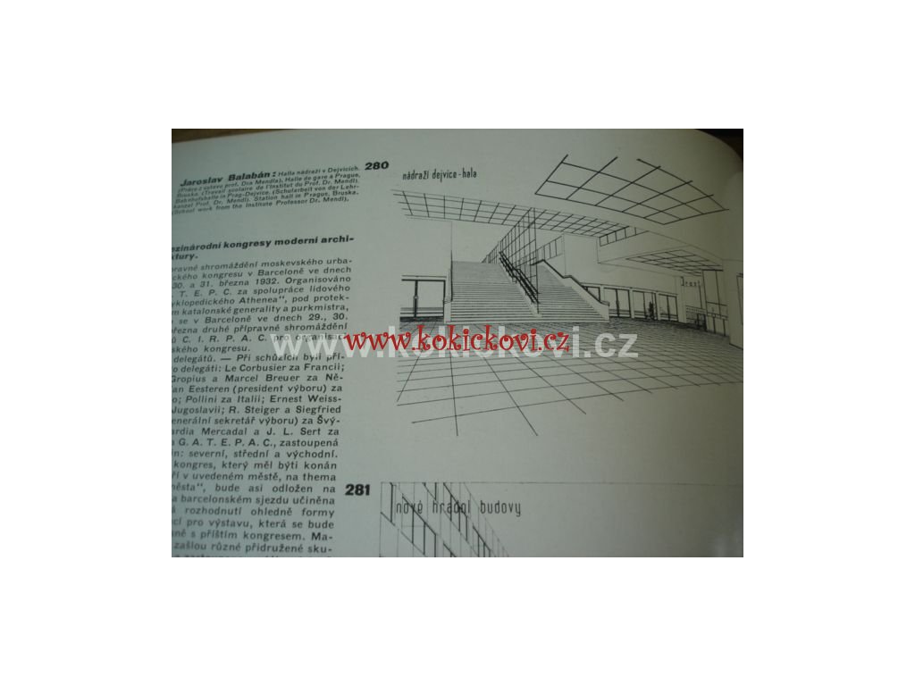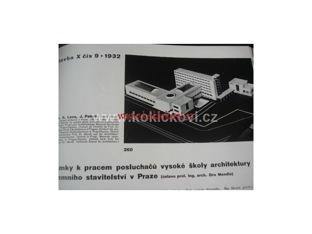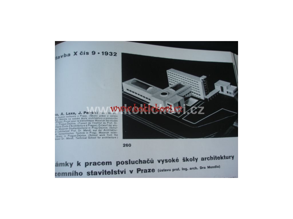 Stavba, měsíčník nové architektury [Building: The Modern Architecture Monthly], year XI, 1932-1933. 4to. 188 pp. Bound without covers with decorative endpages. Owned by the Czech functionalist architect Ferdinand Fencl (owner name written on title page). Very good condition, clean, unmarked pages.