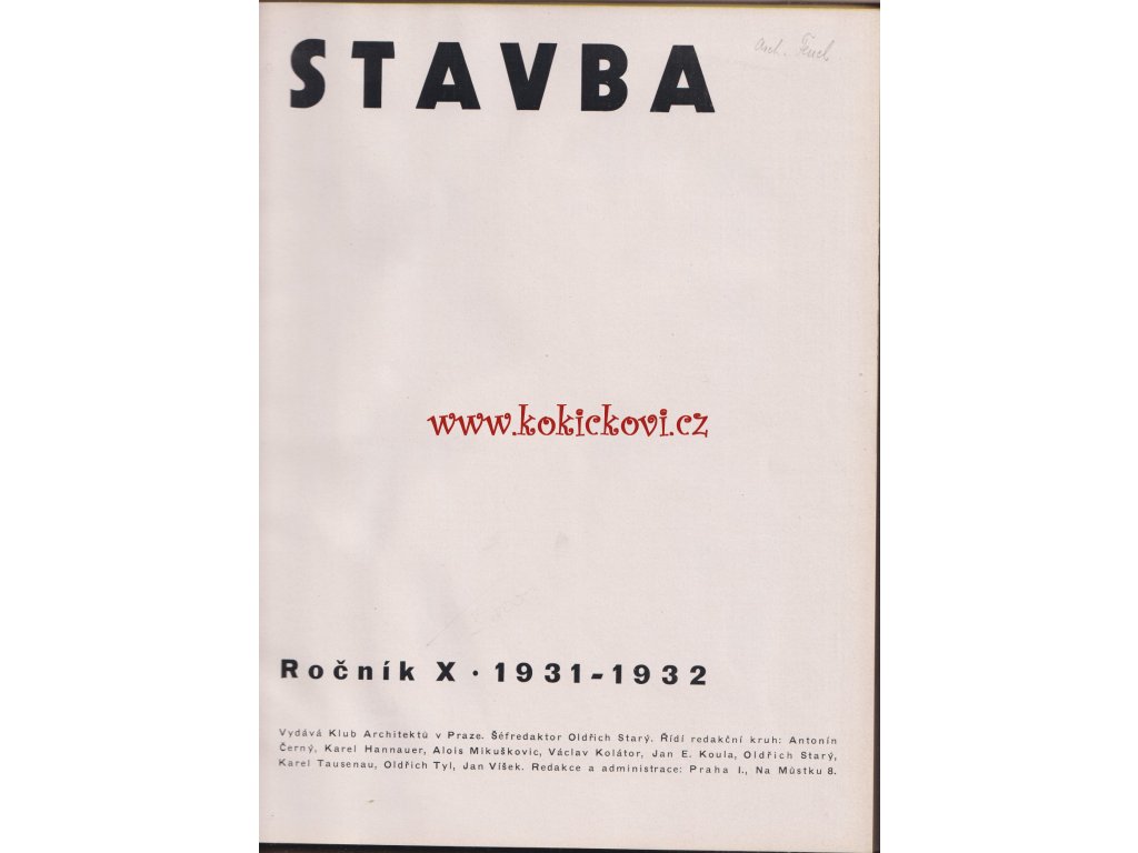 Stavba, měsíčník nové architektury, ročník X, 1931–1932. Formát 4to. 192 stran. Svázáno bez obálek s ozdobnými předsádkami. Vlastnil český funkcionalistický architekt Ferdinand Fencl (jeho jméno je uvedeno na titulní straně). Velmi dobrý stav, čisté, nepopsané stránky.
