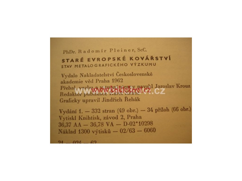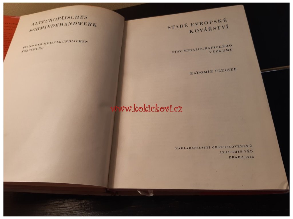 Stav metalografického výzkumu. Radomír Pleiner, Československá akademie věd, Praha, 1962, publikace obsahuje 49 stran obraz. příloh a jiná četná vyobrazení v textu, 1. vydání, 332 stran. Původní plátěná vazba bez přebalu, celkově pěkný stav, Raritní titul, náklad pouhých 1300 výtisků.