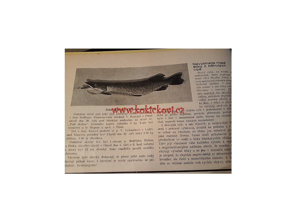 1. ROČNÍK ČASOPISU RYBÁŘ 1934 SRPEN 1933 - LISTOPAD 1934 (17 ČÍSEL), SVÁZÁNO, BEZ OBÁLEK, KTERÉ BYLY STEJNÉ, JEDNA OBÁLKA NALEPENA NA DESKY. CELKEM 17 ČÍSEL (ČÍSLA 1-14 VYŠLA SAMOSTATNĚ, ČÍSLA 15-17 VYŠLA V LISTOPADU 1934 JAKO TROJČÍSLO; SVAZEK TEDY OBSAHUJE 15 SEŠITŮ SE 17 ČÍSLY). CELKEM 320 STRAN. UVNITŘ RAZÍTKA. VELMI PĚKNÝ ZACHOVALÝ STAV. RARITNÍ POLOŽKA.