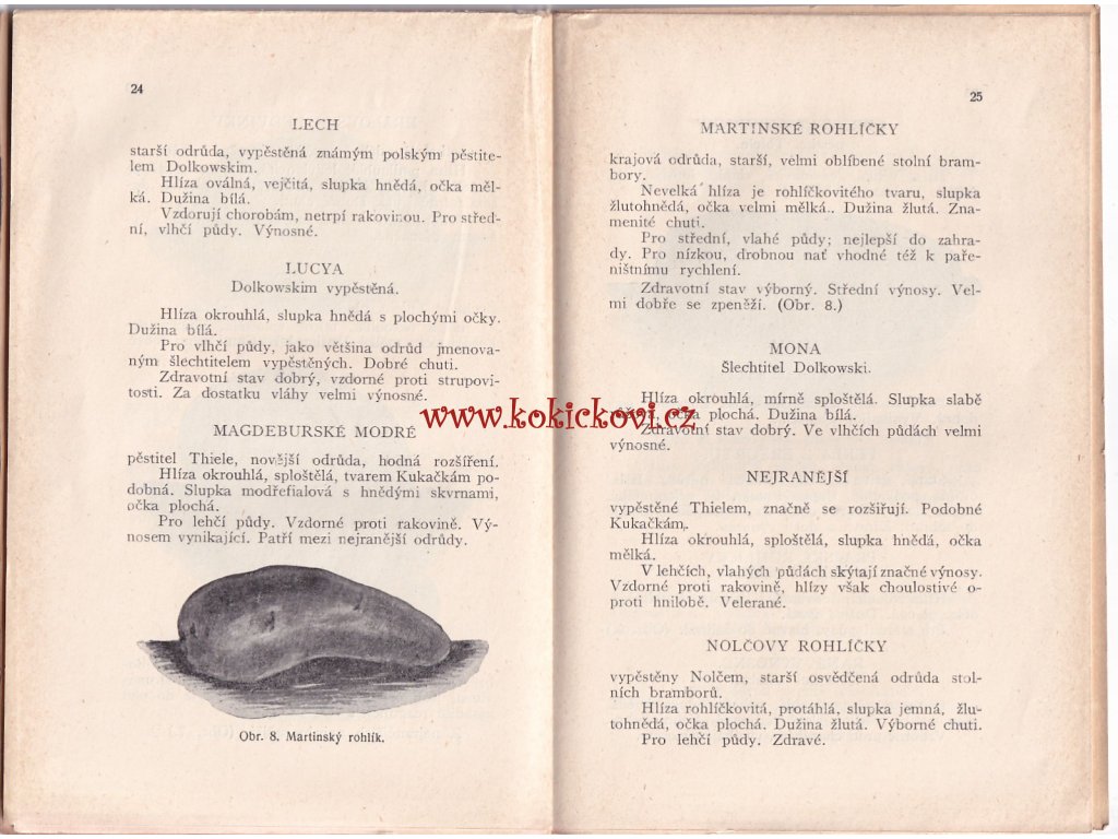 Rané brambory. Pěstování raných bramborů na poli i v zahradě, jeho výhody a popis nejranějších odrůd - 1925 - martinské rohlíčky